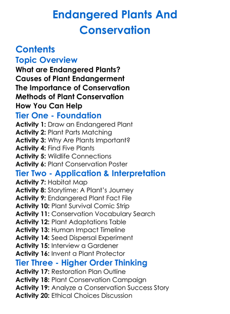 Endangered Plants And Conservation Worksheet Activity Booklet