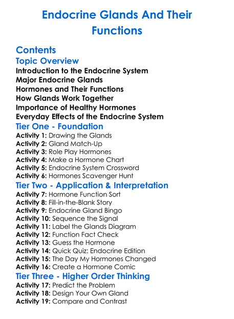 Endocrine Glands And Their Functions Worksheet Activity Booklet