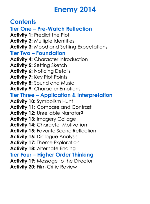 Enemy 2014 Worksheet Activity Booklet