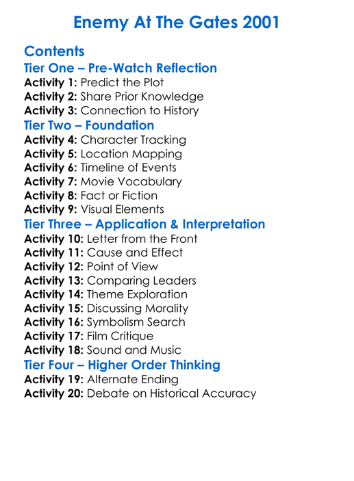 Enemy At The Gates 2001 Worksheet Activity Booklet