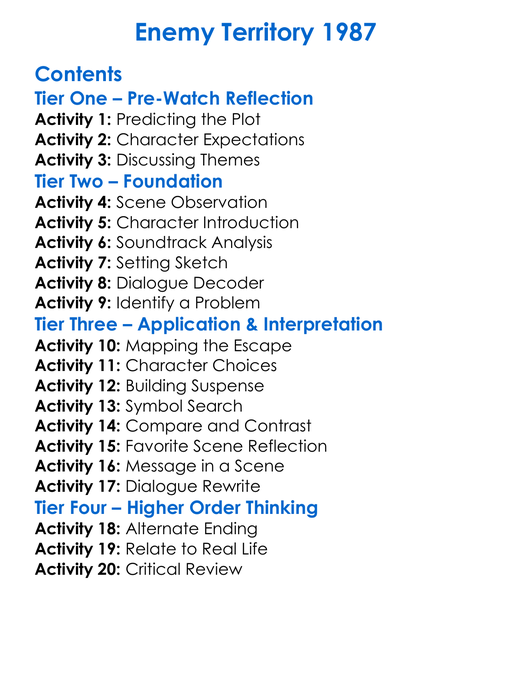 Enemy Territory 1987 Worksheet Activity Booklet