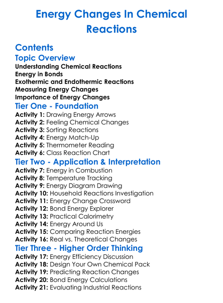 Energy Changes In Chemical Reactions Worksheet Activity Booklet
