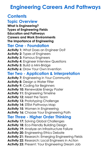 Engineering Careers And Pathways Worksheet Activity Booklet