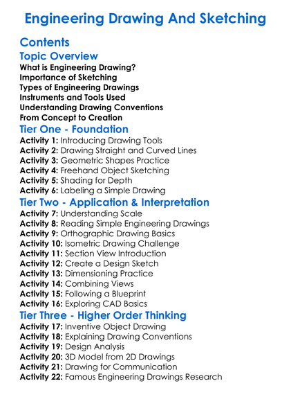 Engineering Drawing And Sketching Worksheet Activity Booklet
