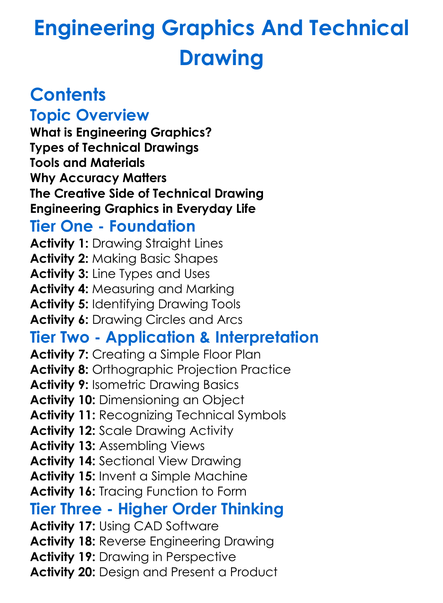 Engineering Graphics And Technical Drawing Worksheet Activity Booklet