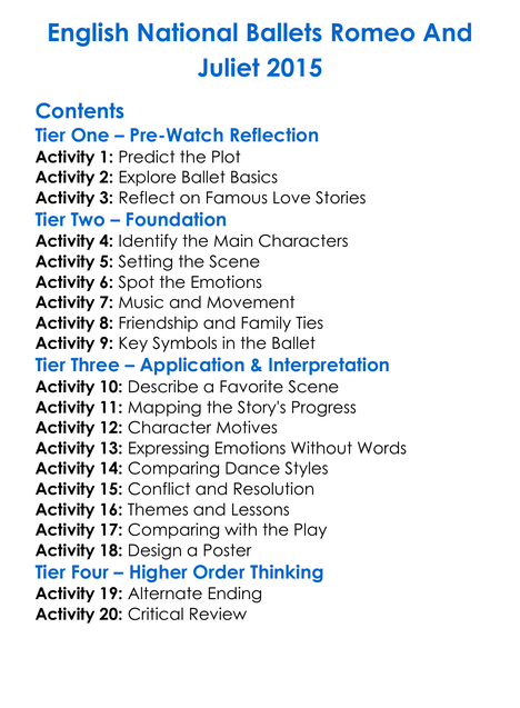 English National Ballets Romeo And Juliet 2015 Worksheet Activity Booklet