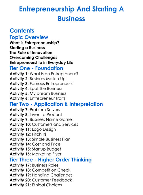 Entrepreneurship And Starting A Business Worksheet Activity Booklet