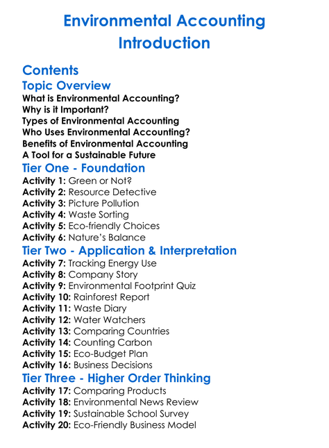 Environmental Accounting Introduction Worksheet Activity Booklet