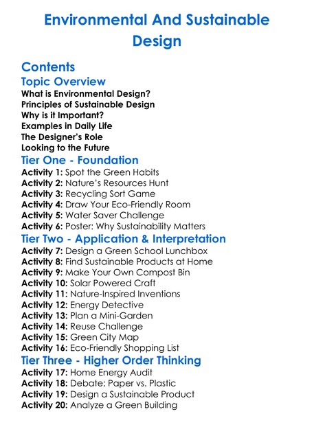 Environmental And Sustainable Design Worksheet Activity Booklet