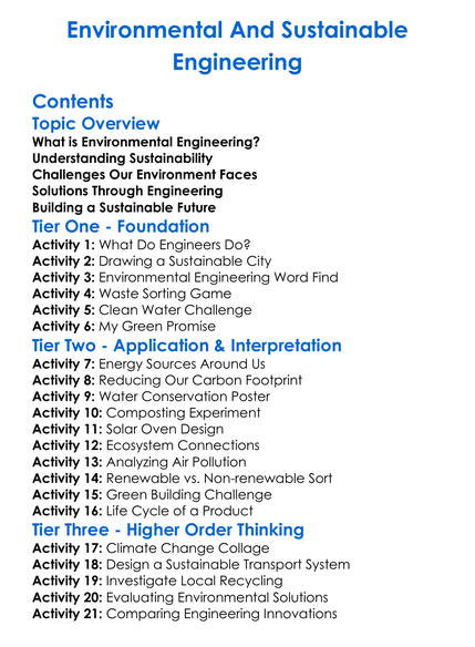 Environmental And Sustainable Engineering Worksheet Activity Booklet