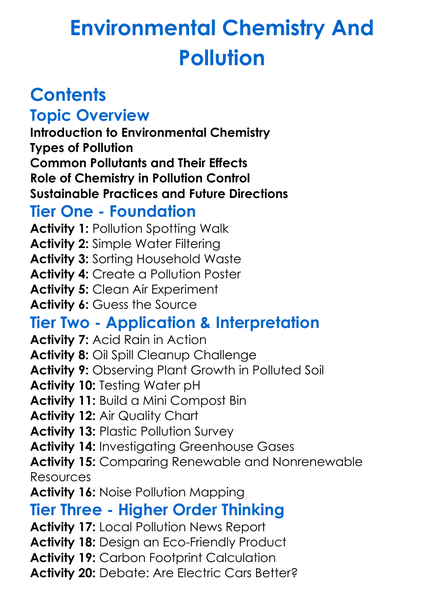 Environmental Chemistry And Pollution Worksheet Activity Booklet