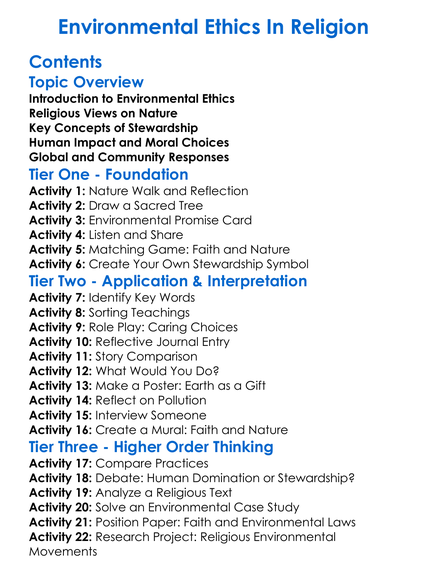 Environmental Ethics In Religion Worksheet Activity Booklet