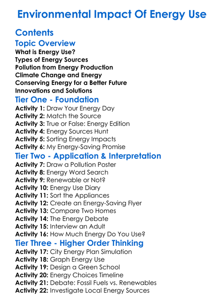 Environmental Impact Of Energy Use Worksheet Activity Booklet