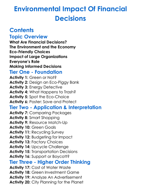 Environmental Impact Of Financial Decisions Worksheet Activity Booklet