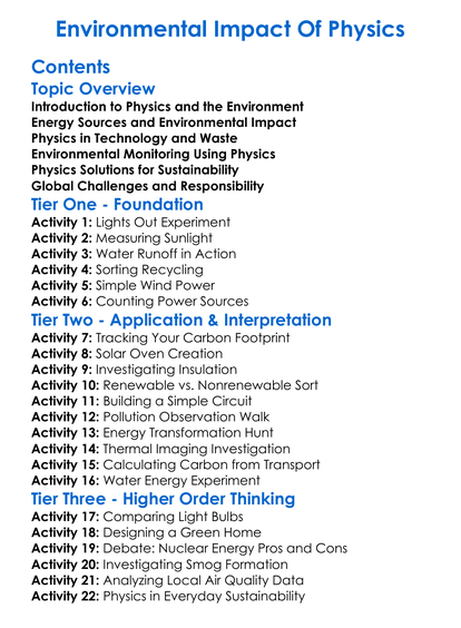 Environmental Impact Of Physics Worksheet Activity Booklet