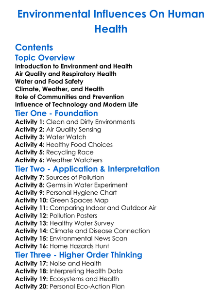 Environmental Influences On Human Health Worksheet Activity Booklet