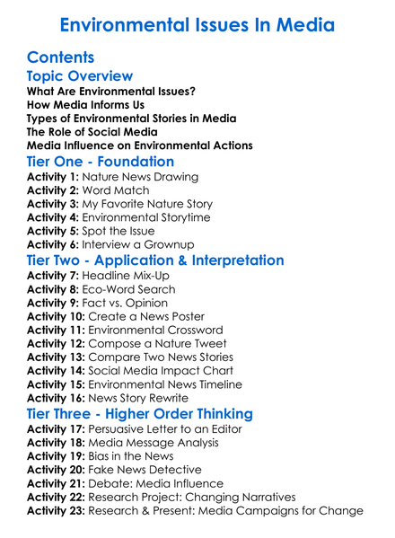 Environmental Issues In Media Worksheet Activity Booklet