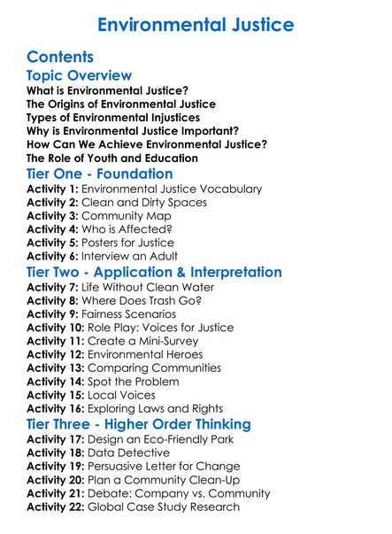 Environmental Justice Worksheet Activity Booklet