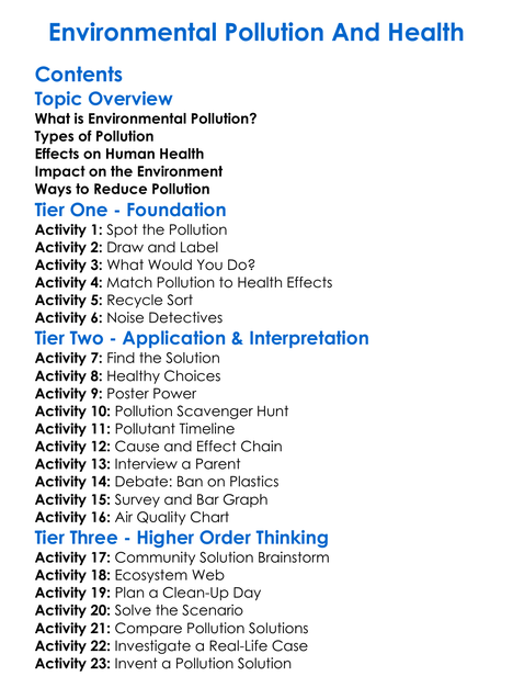 Environmental Pollution And Health Worksheet Activity Booklet