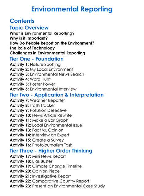 Environmental Reporting Worksheet Activity Booklet