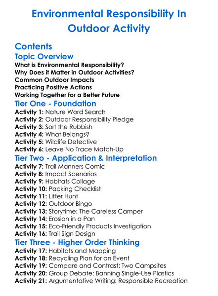 Environmental Responsibility In Outdoor Activity Worksheet Activity Booklet