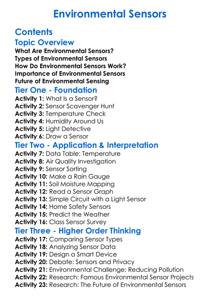 Environmental Sensors Worksheet Activity Booklet