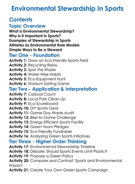 Environmental Stewardship In Sports Worksheet Activity Booklet