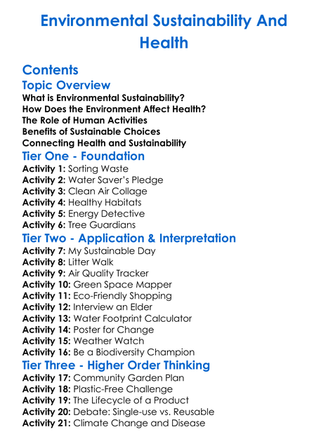 Environmental Sustainability And Health Worksheet Activity Booklet
