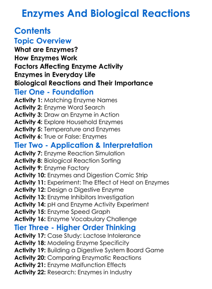 Enzymes And Biological Reactions Worksheet Activity Booklet