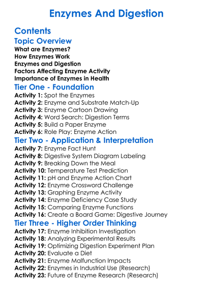 Enzymes And Digestion Worksheet Activity Booklet