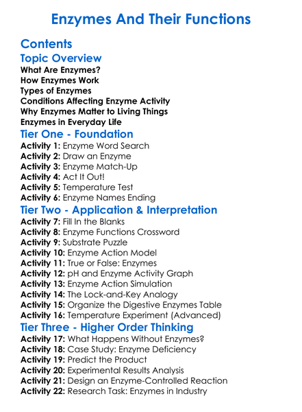Enzymes And Their Functions Worksheet Activity Booklet