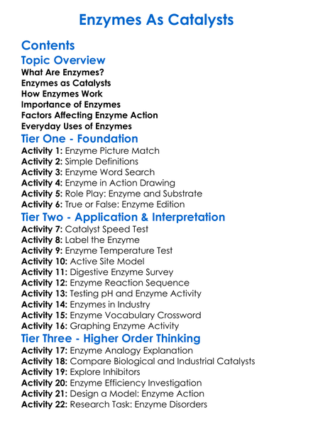Enzymes As Catalysts Worksheet Activity Booklet