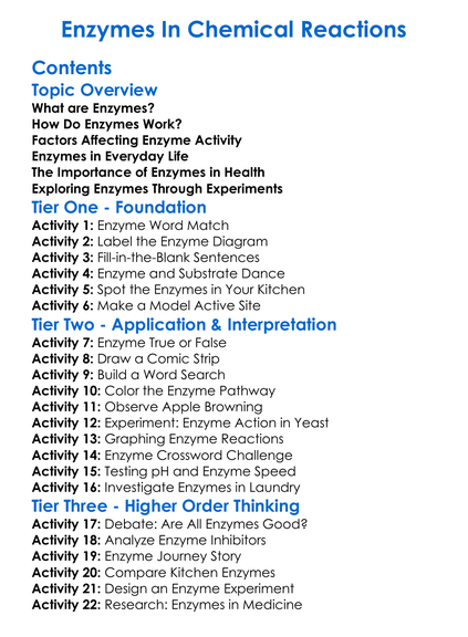 Enzymes In Chemical Reactions Worksheet Activity Booklet
