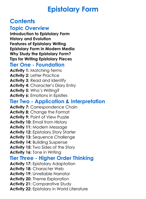 Epistolary Form Worksheet Activity Booklet