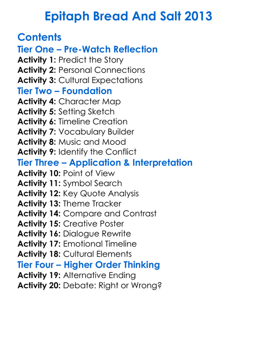 Epitaph Bread And Salt 2013 Worksheet Activity Booklet