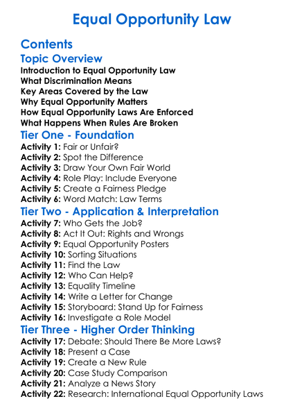 Equal Opportunity Law Worksheet Activity Booklet