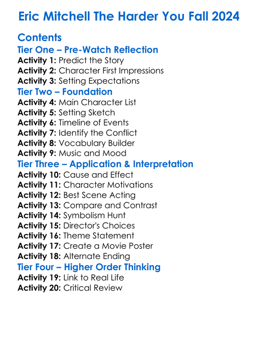 Eric Mitchell The Harder You Fall 2024 Worksheet Activity Booklet