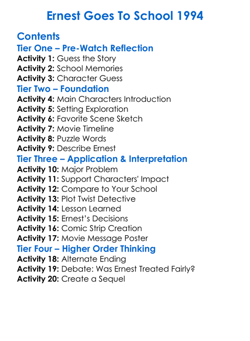 Ernest Goes To School 1994 Worksheet Activity Booklet