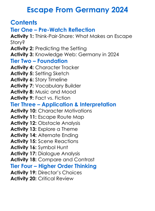 Escape From Germany 2024 Worksheet Activity Booklet