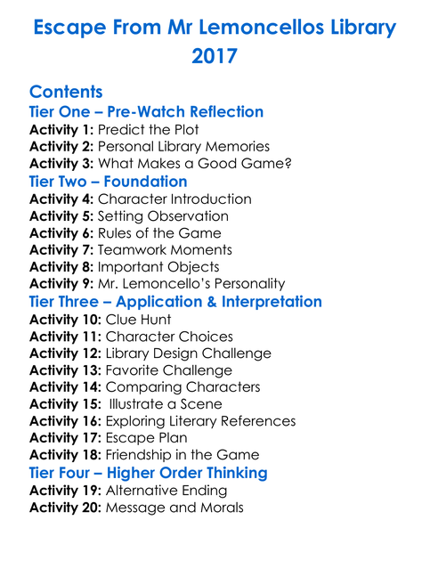 Escape From Mr Lemoncellos Library 2017 Worksheet Activity Booklet
