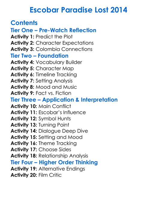 Escobar Paradise Lost 2014 Worksheet Activity Booklet