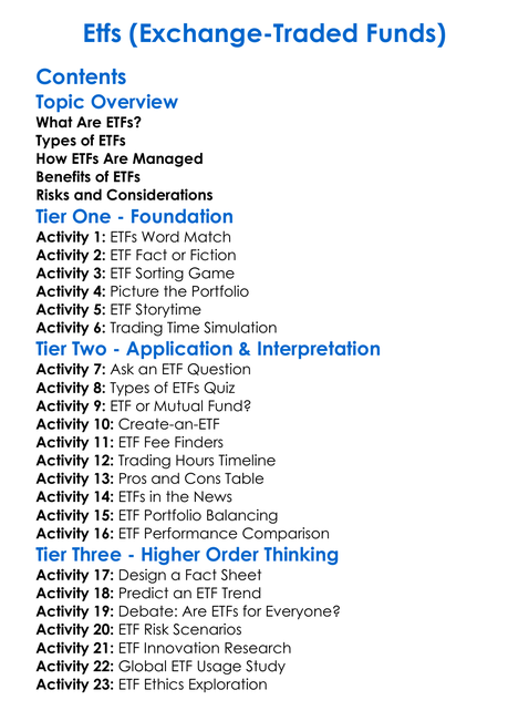 Etfs Exchange-Traded Funds Worksheet Activity Booklet
