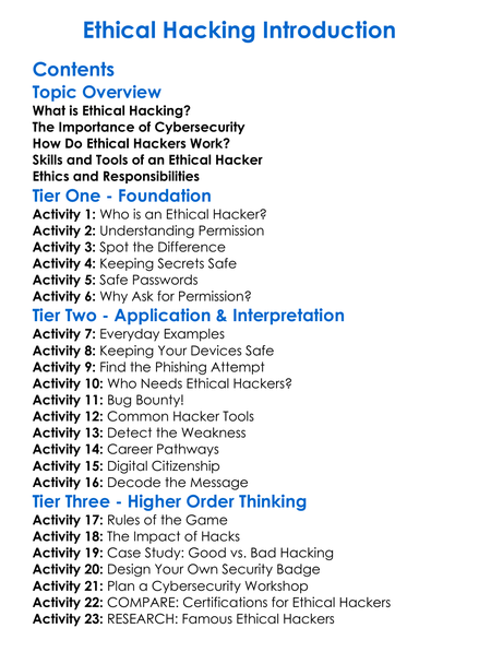Ethical Hacking Introduction Worksheet Activity Booklet