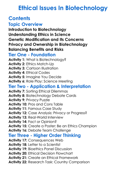 Ethical Issues In Biotechnology Worksheet Activity Booklet