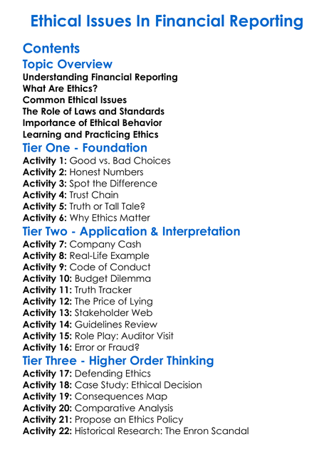 Ethical Issues In Financial Reporting Worksheet Activity Booklet