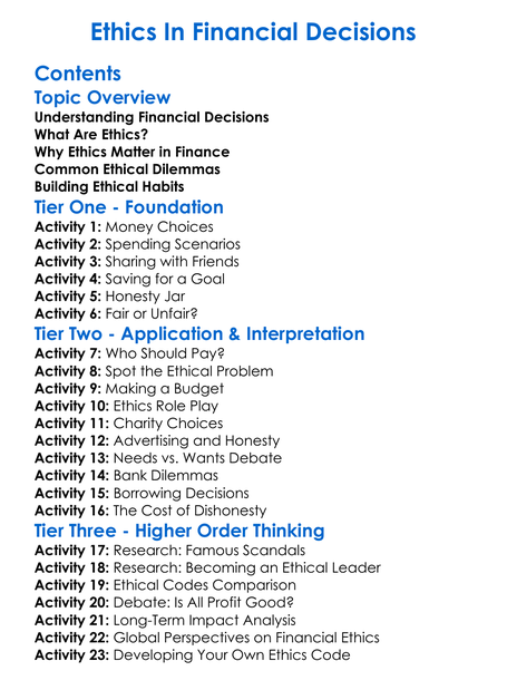 Ethics In Financial Decisions Worksheet Activity Booklet