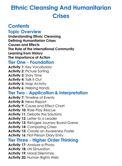 Ethnic Cleansing And Humanitarian Crises Worksheet Activity Booklet