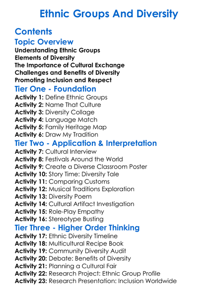 Ethnic Groups And Diversity Worksheet Activity Booklet