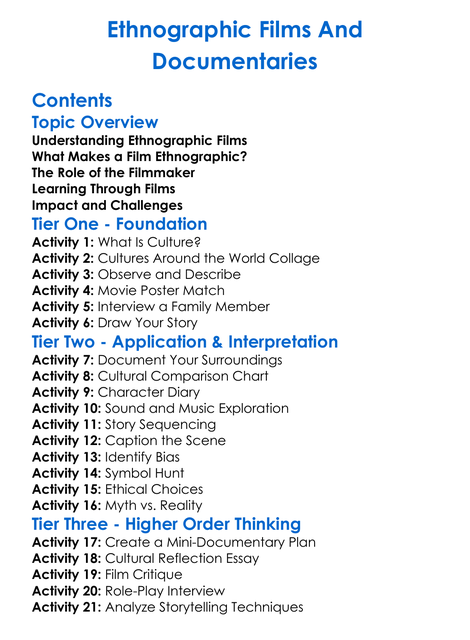 Ethnographic Films And Documentaries Worksheet Activity Booklet