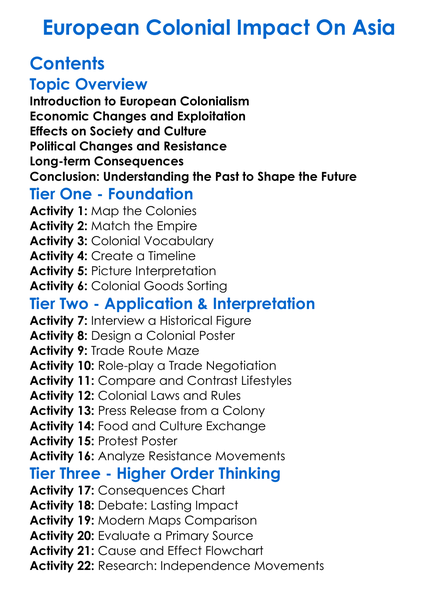 European Colonial Impact On Asia Worksheet Activity Booklet